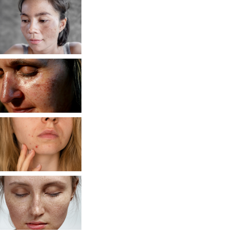 Skin pigmentation comes in various types, including melasma, sunspots, post-inflammatory hyperpigmentation, and freckles.